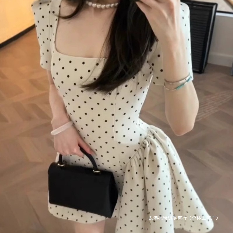 跨境双轨虞书欣姜暮同款春夏新款小个子白色波点连衣裙感短裙涤纶