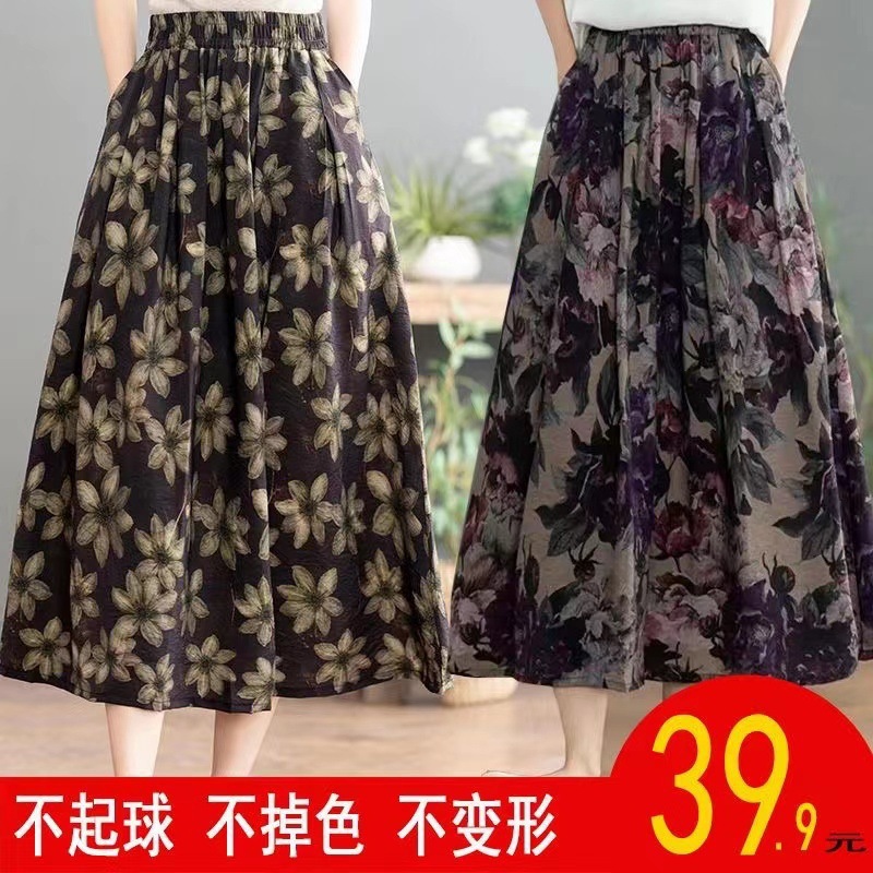 碎花半身裙女士春夏新款高腰百褶垂感字大摆中长裙百搭半裙代发包