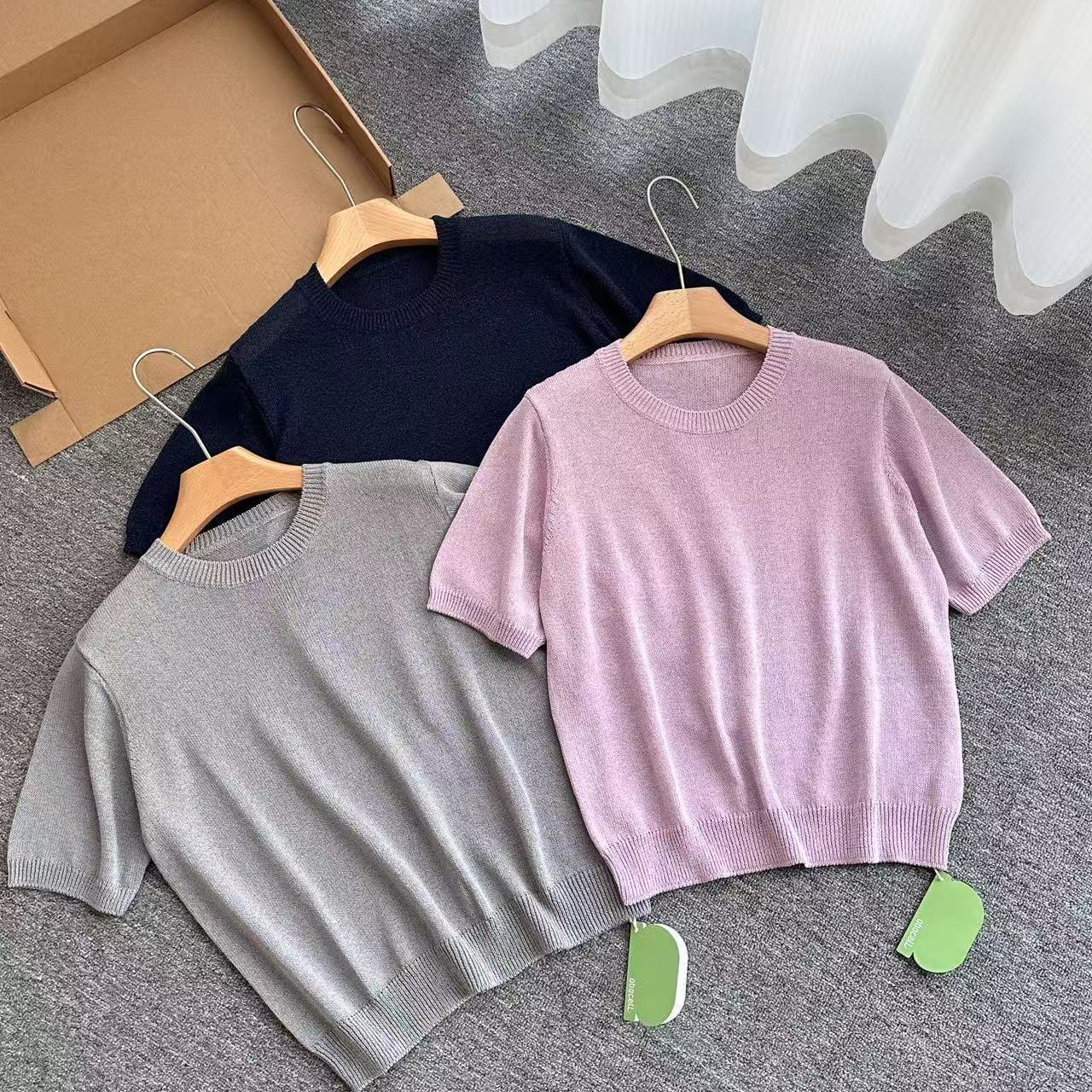 进口和纸纱柔和美妙圆领短袖薄款针织衫女士夏季宽松百搭显瘦T恤