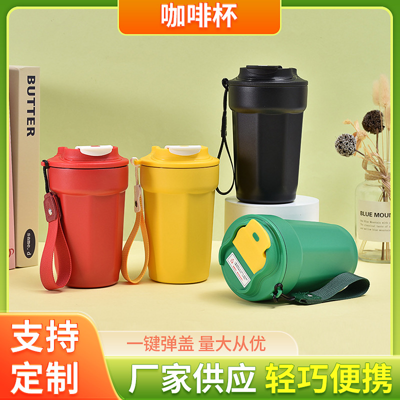 2025年一键按压开盖保温杯不锈钢水杯车载茶杯厂家超长保温大容量