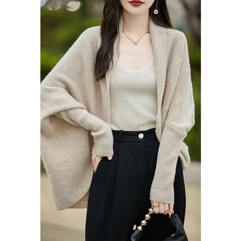 设计感开衫女2025秋季茧型针织披肩宽松外搭蝙蝠袖斗篷毛衣外套