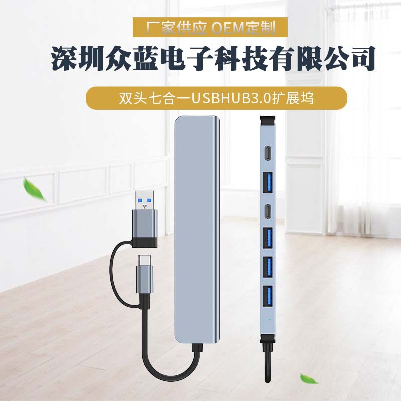 双头七合一usbhub3.0扩展坞多合一电脑平板接鼠标键盘USB扩展器
