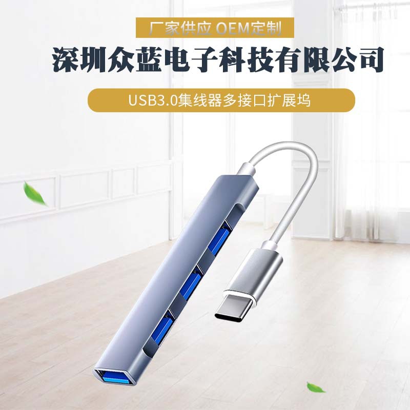 USB3.0集线器多接口扩展坞typec笔记本电脑分线器转换器usb一拖四