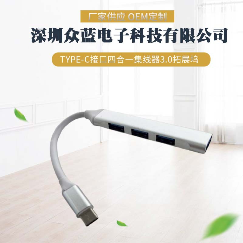 Type-c接口四合一集线器3.0拓展坞多usb口手机电脑集线分线器批发