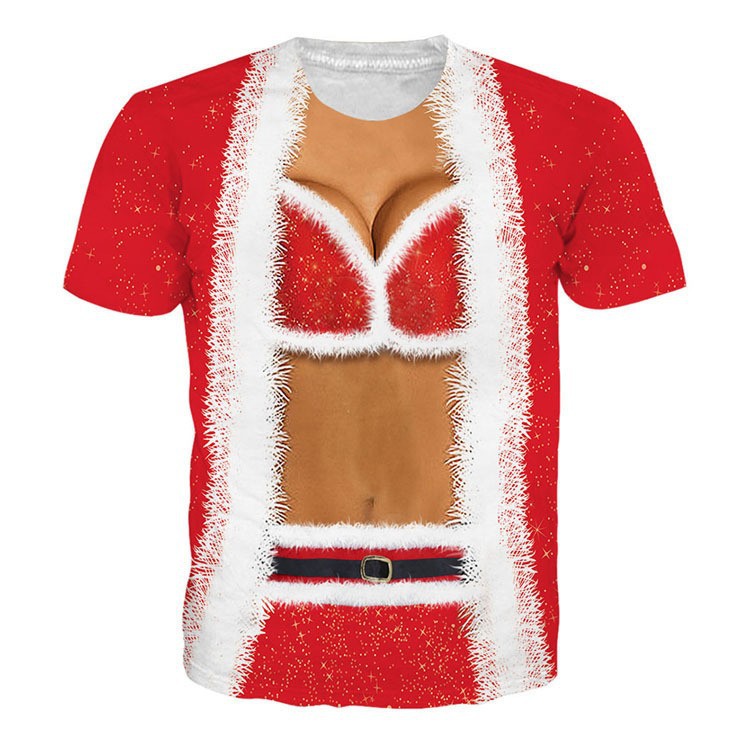 欧美跨境低价批发男女夏季新款亚马逊专供圆领休闲短袖圣诞新年