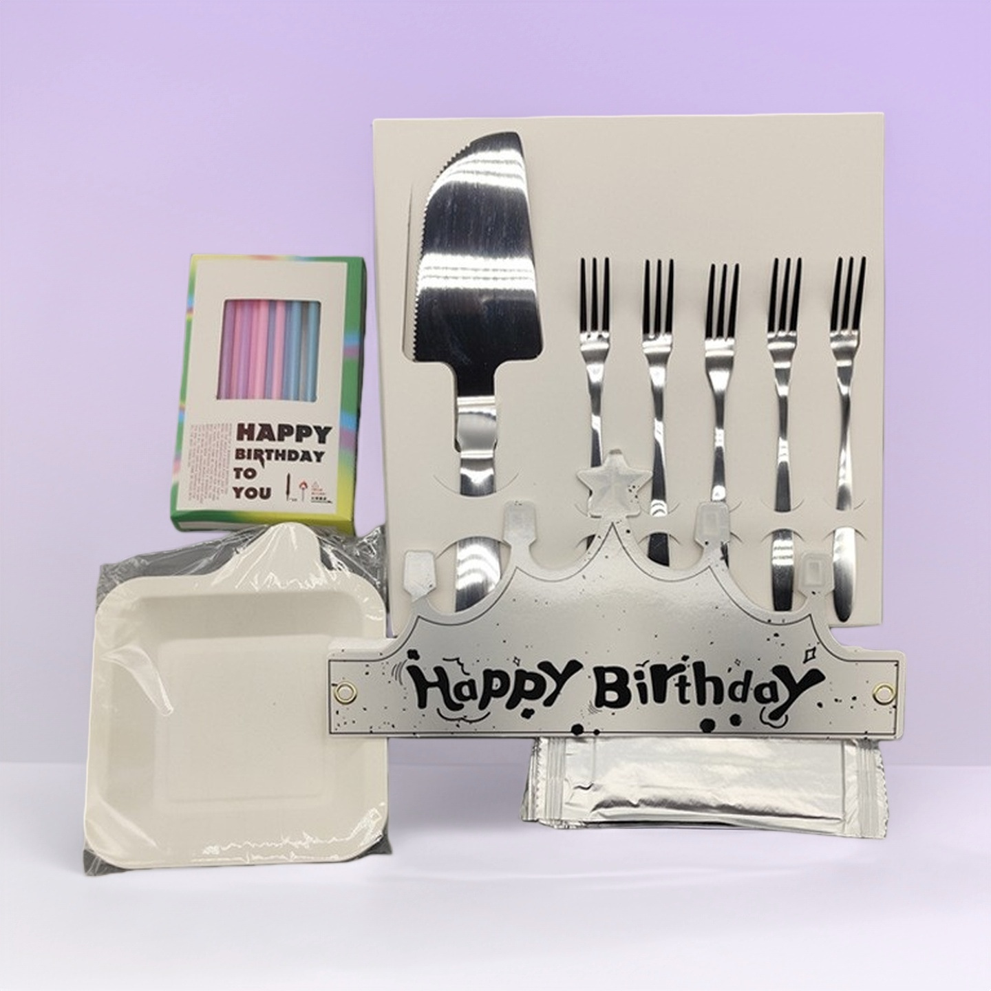 一次性刀叉蛋糕餐具不锈钢套装生日蛋糕蜡烛餐具组合蜡烛盒装餐盘