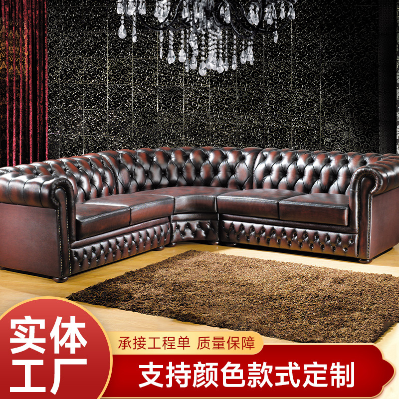欧式沙发复古别墅客厅卧室多人位沙发办公轻奢牛皮沙发家具批发