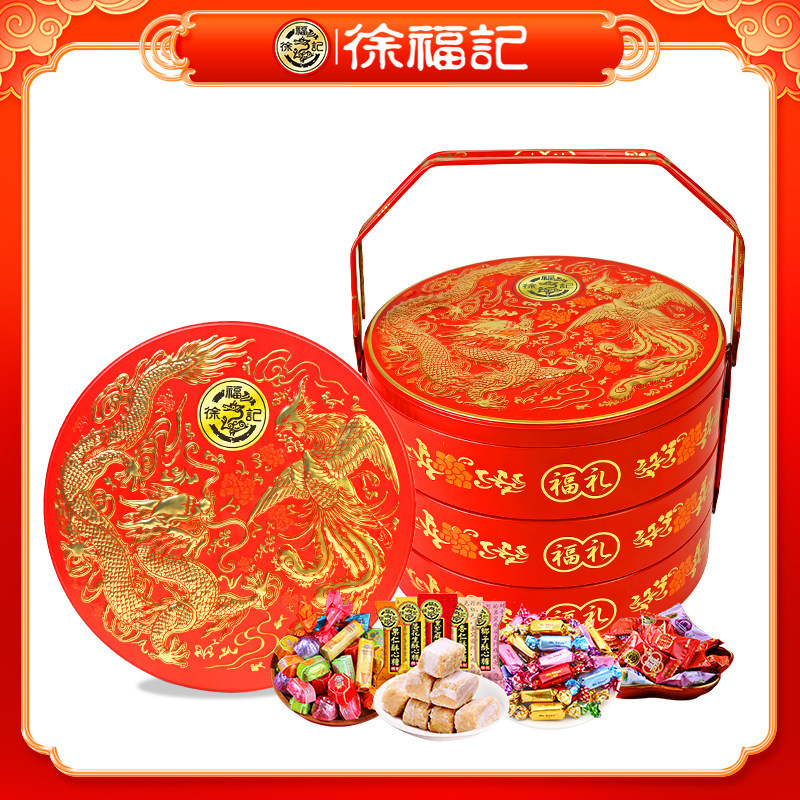 徐福记新年福糖二三层龙年铁罐手提礼盒880g送礼喜宴探访什锦礼盒
