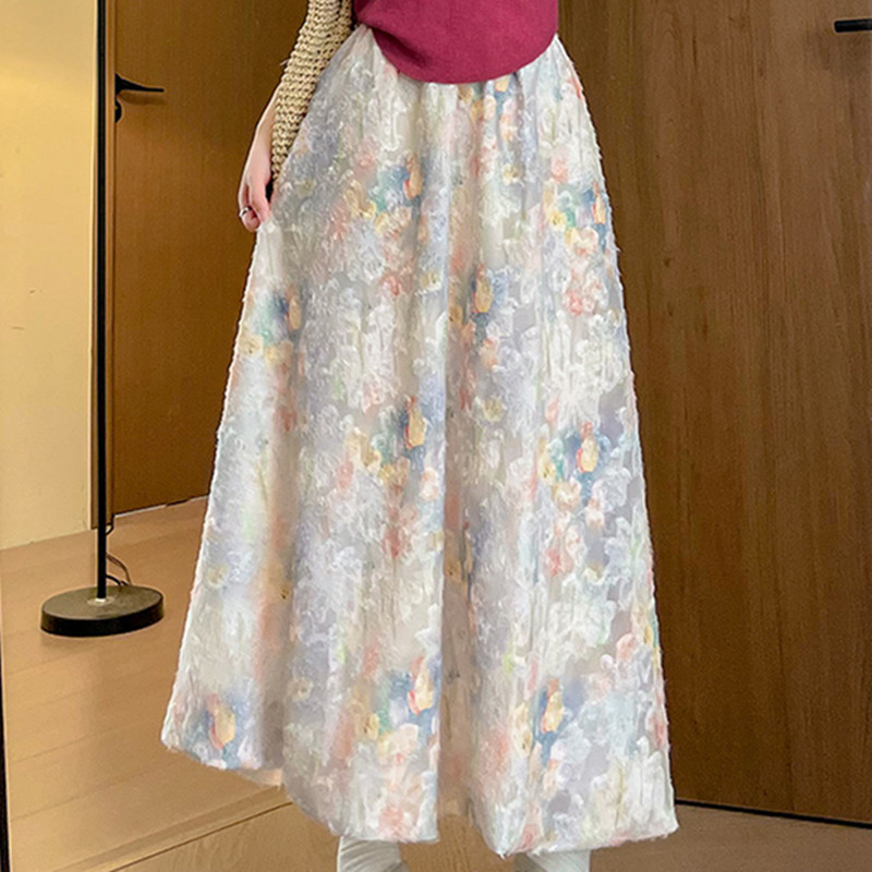 源头厂家定制碎花蓬蓬长裙女夏季高腰显瘦a字法式彩色蛋糕裙