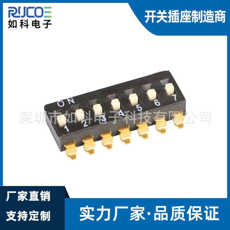 2.54MM间距 SMT黑色贴片拨码开关 7位耐温指拨开关