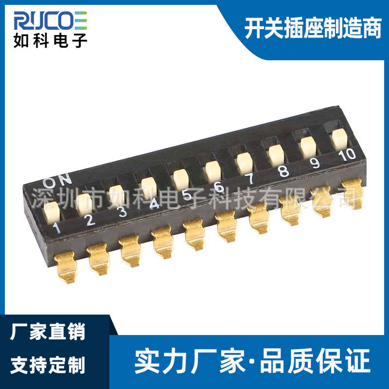 2.54MM间距黑色插件拨码开关 10位耐温插件式平拨指拨开关