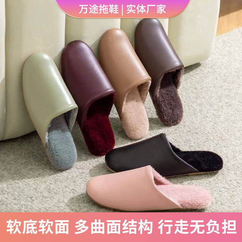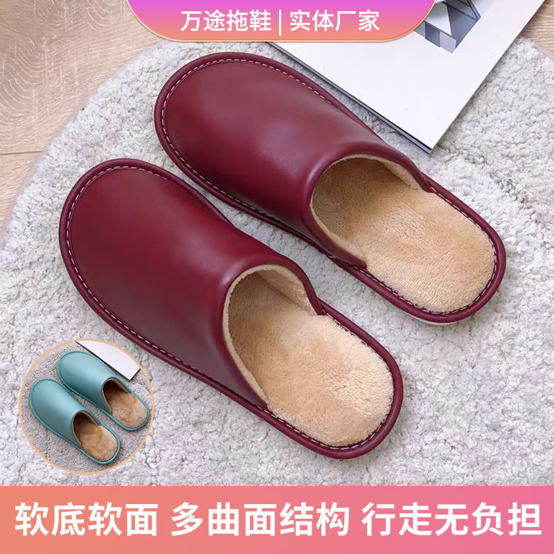 冬款日式防滑拖鞋pu冬季拖鞋室内外家居家用情侣包头防滑鞋批发