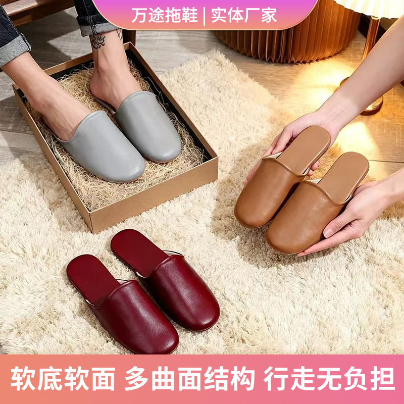 2025款情侣拖鞋高级感室内春秋拖鞋春秋皮拖鞋办公室便携包头拖鞋