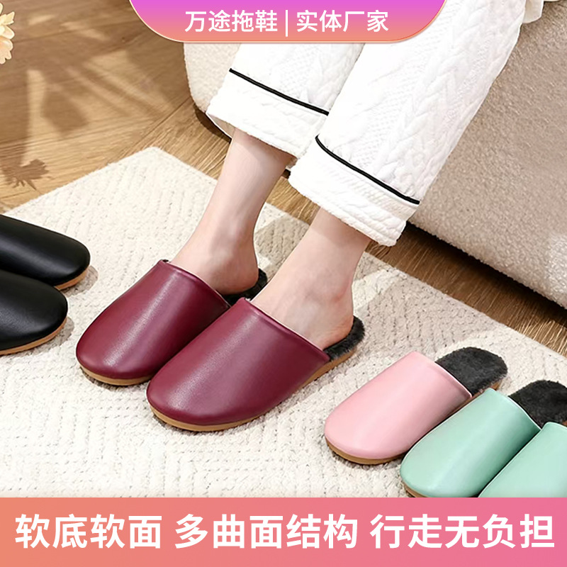新款保暖皮拖鞋居家情侣男女室内日系地板家居棉拖鞋厂家批发