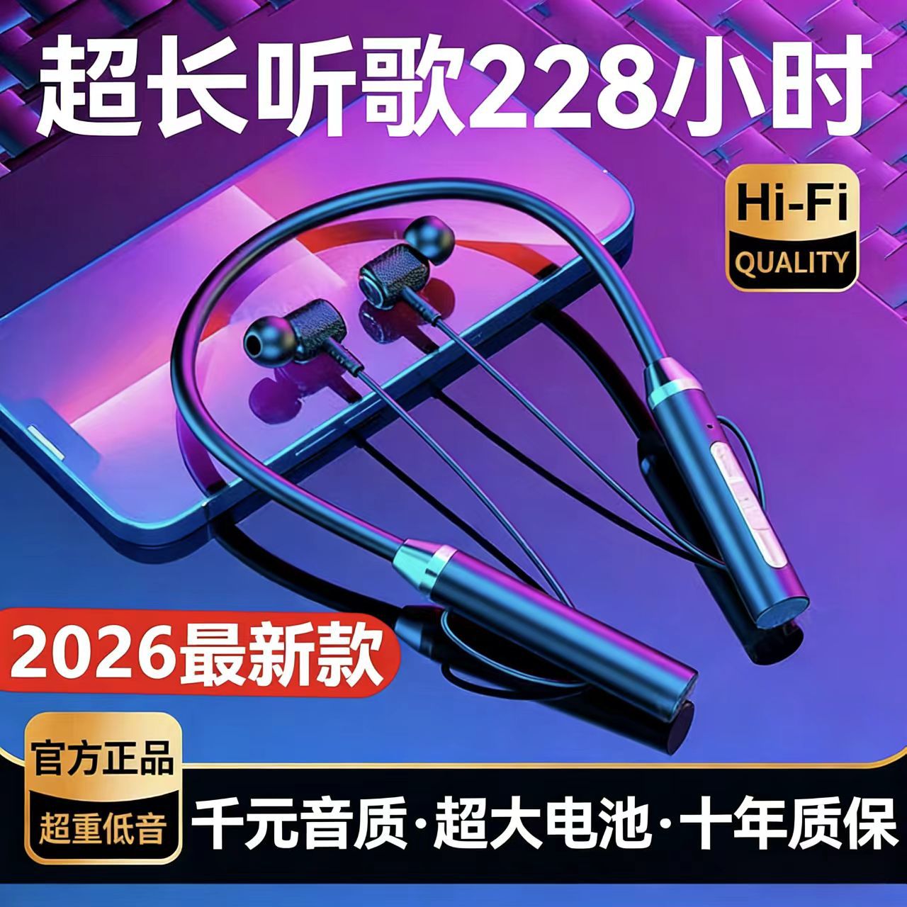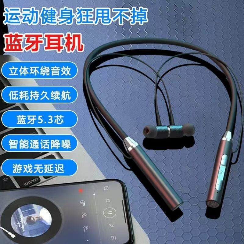挂脖蓝牙耳机运动风无线2026新款长续航防水磁吸降噪入耳式颈挂式