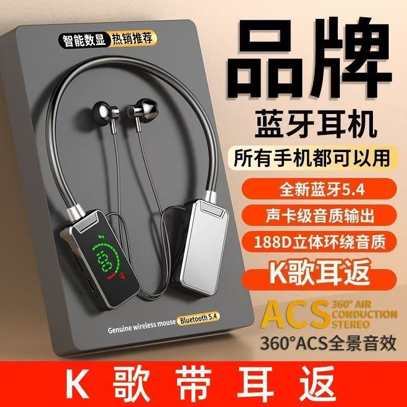新款挂脖式蓝牙耳机数显屏支持k歌带EQ耳返超长续航手机通用批发