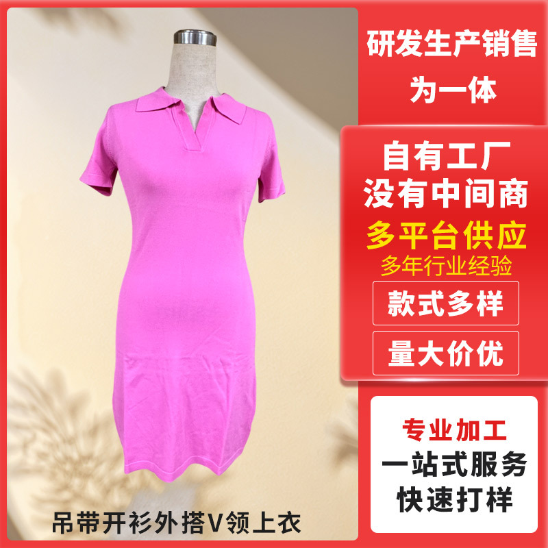 2025春秋时尚polo领针织衫小个子女装连衣裙气质短袖修身包臀裙子