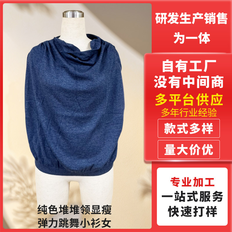 2025春秋长袖针织衫新品时尚百搭纯色堆堆领显瘦弹力跳舞小衫女