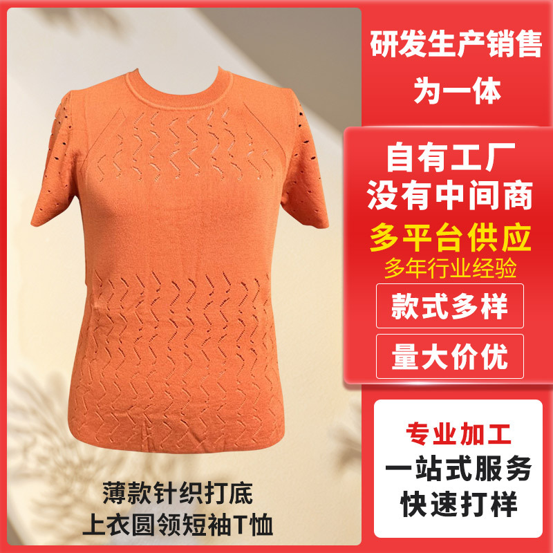 薄款针织打底上衣圆领显瘦透气短袖T恤女夏季新品短款半袖毛衫