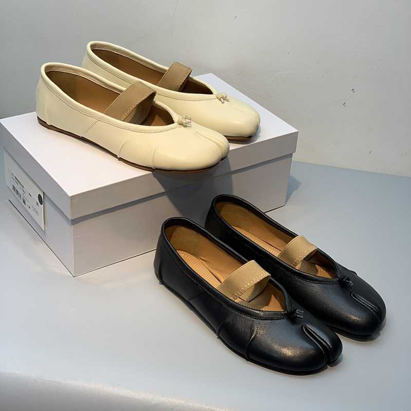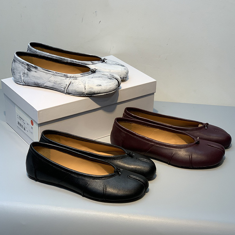 马吉拉爆裂纹镜面分趾猪蹄鞋女平底一脚蹬马蹄手工鞋tabi芭蕾舞鞋