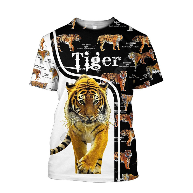 独立站 跨境欧美风3D老虎印花男士上衣休闲短袖T恤