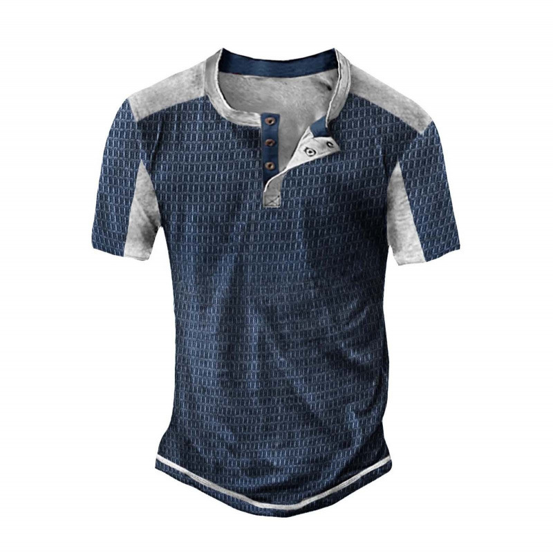 外贸3d印花T恤短袖男士三粒扣亨利衫夏季休闲短袖上衣