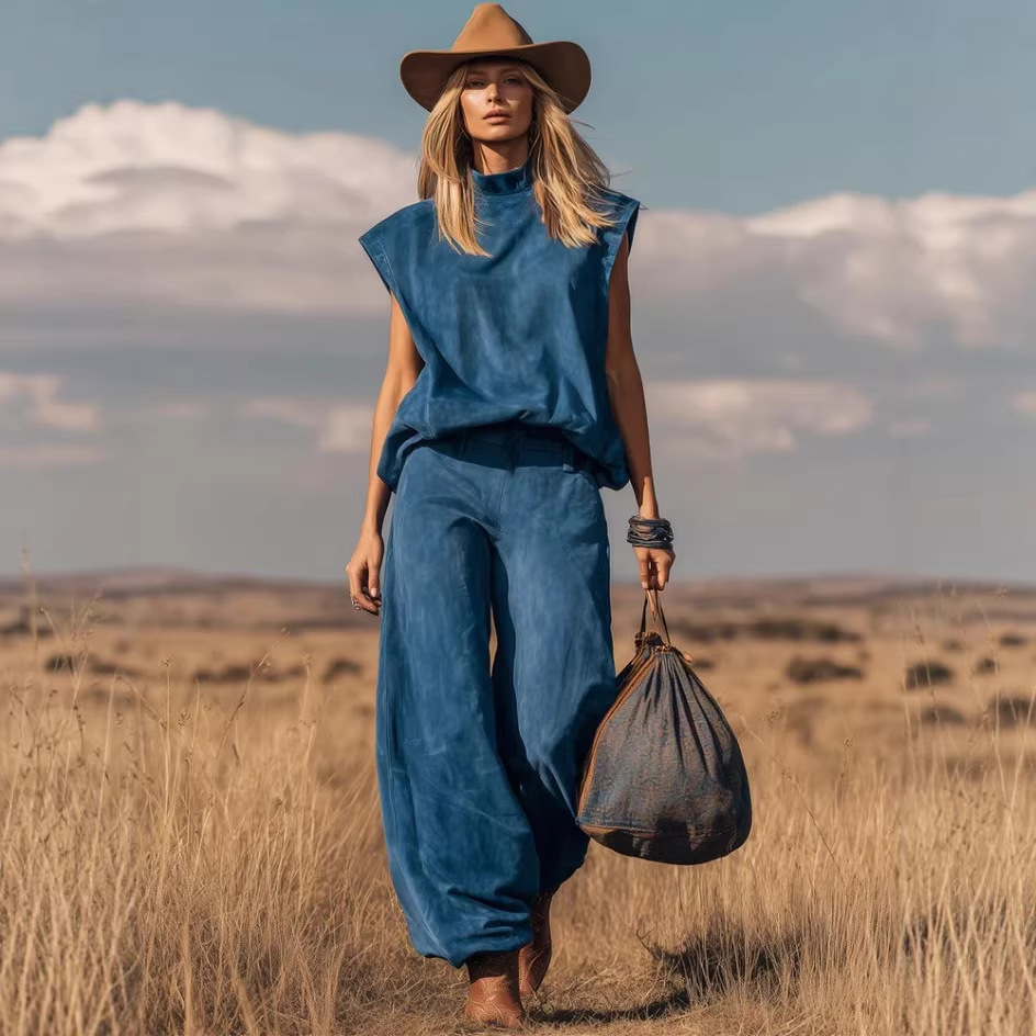 2025外贸跨境女士休闲宽松炫酷图案数码印花街头潮人时尚仿牛仔裤