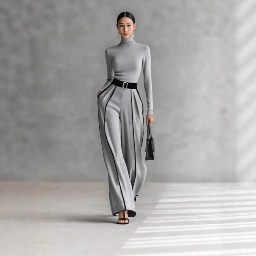 灰色西装阔腿裙裤女2026春季新款高腰宽松垂感慵懒风大摆休闲裤