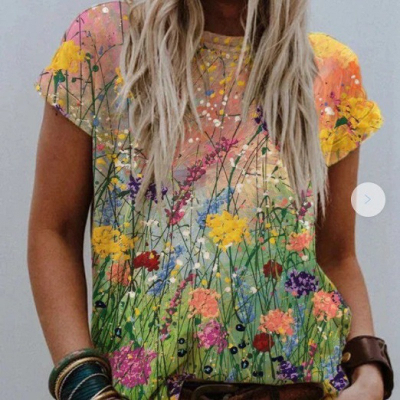 欧美跨境新款春夏季花朵清新3D数码印花T恤女宽松 短袖