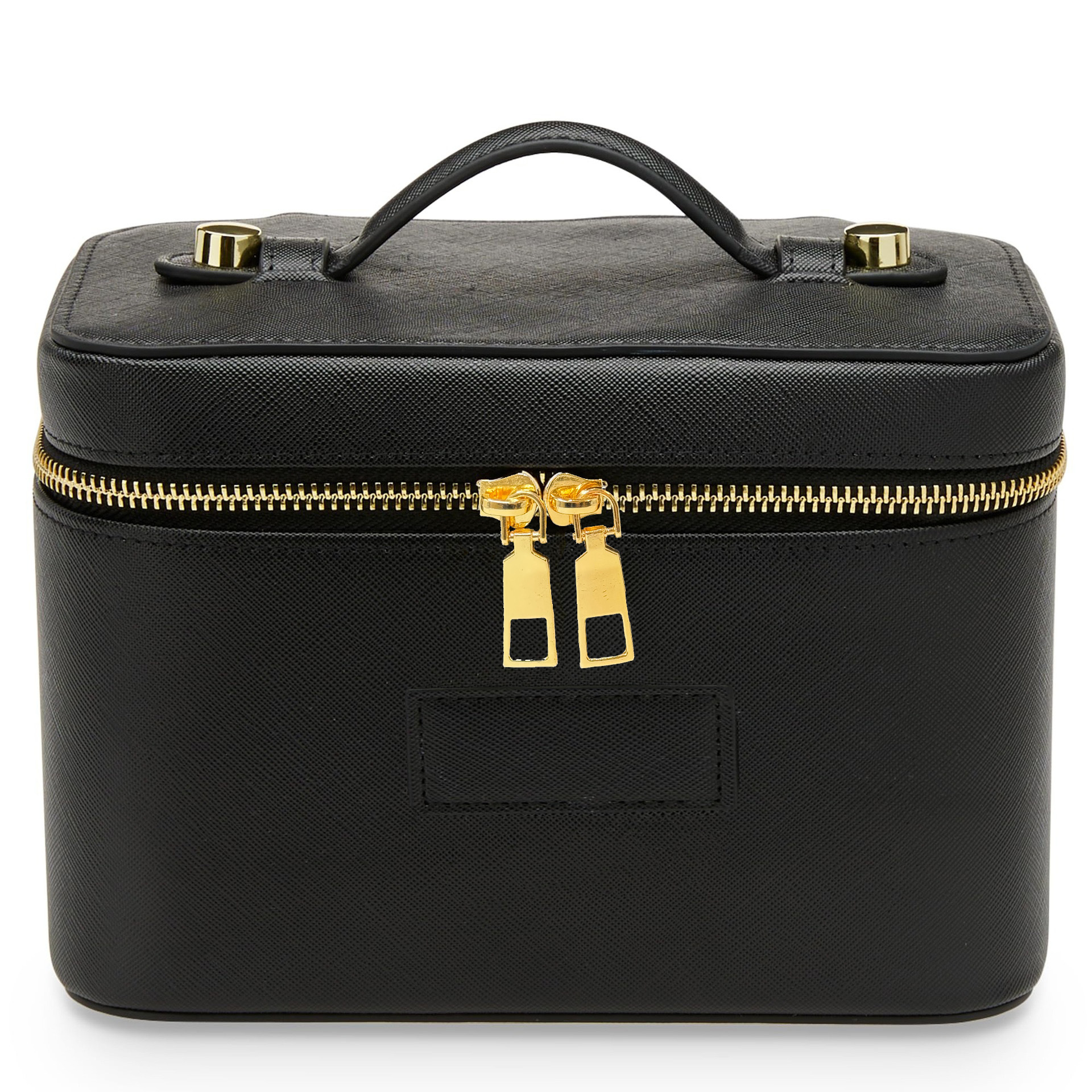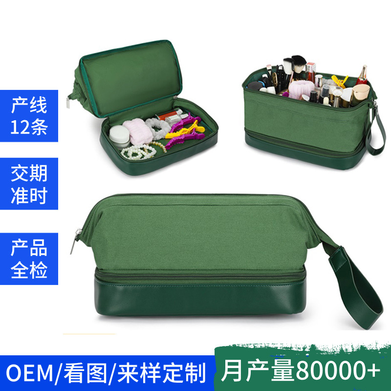 厂家直供黑色pu皮质化妆包双拉链手提分区收纳包便携外出化妆包袋