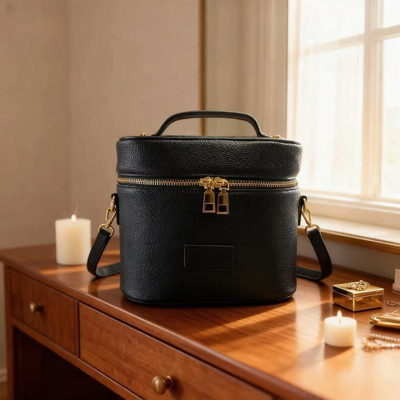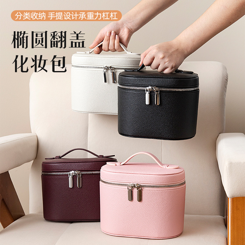 水桶包可拆卸新款简约便携式带肩带手提大容量PU皮旅行分区化妆包