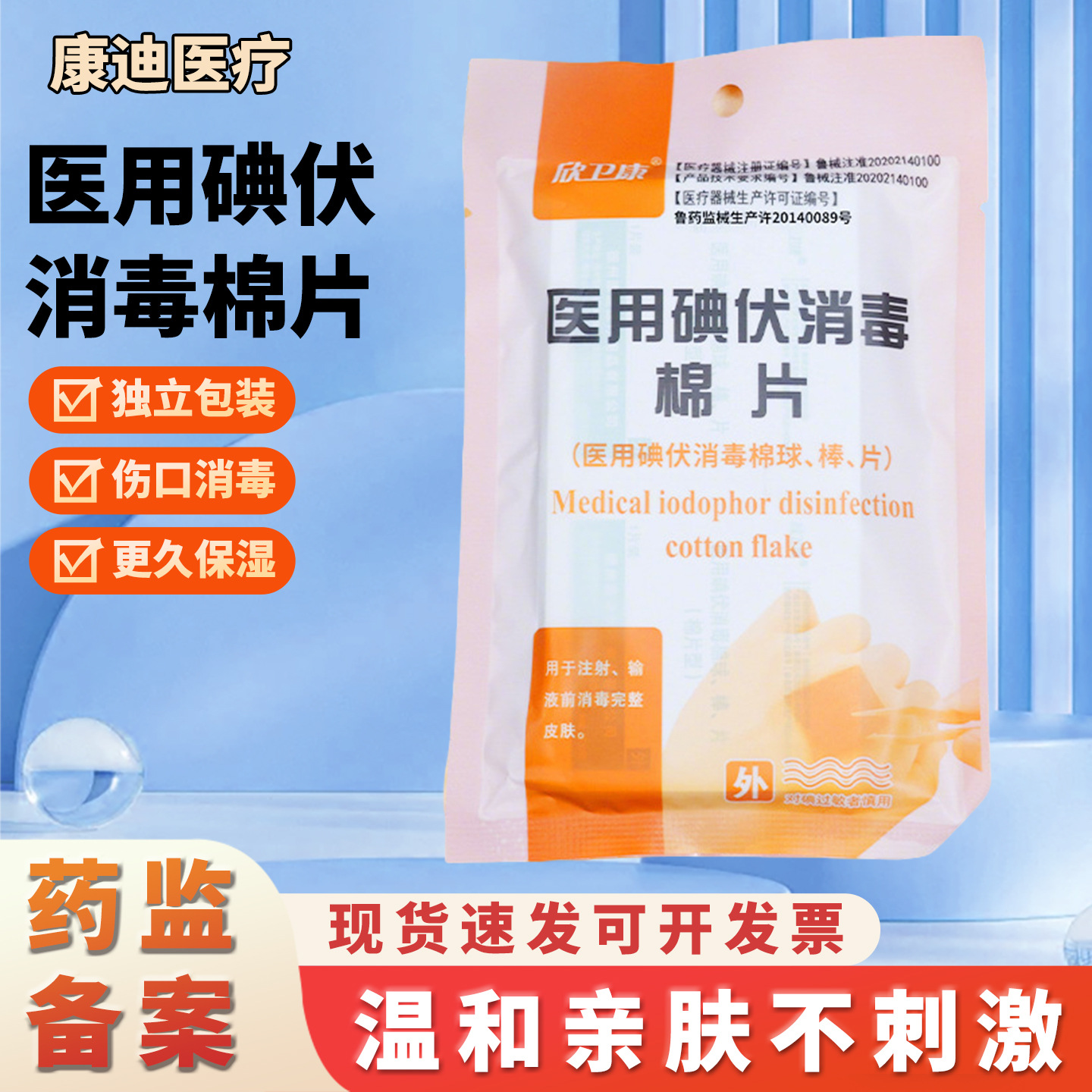 医用碘伏消毒棉片伤口杀菌清洁消毒片户外一次性医用碘伏消毒棉片