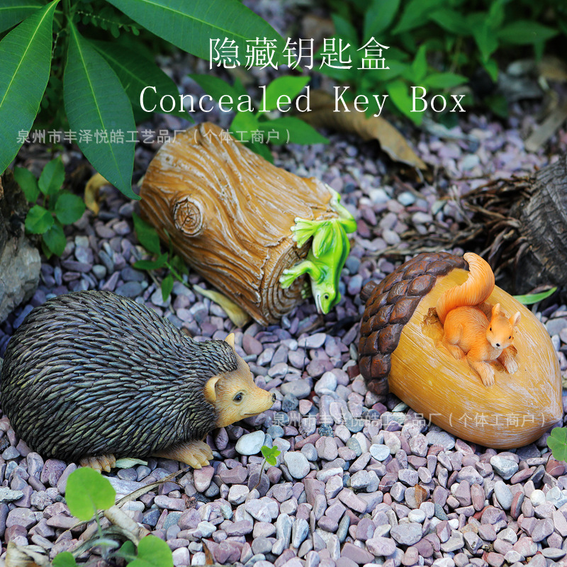 跨境创意仿真石头钥匙储存盒树脂石头造型隐藏私房钱收纳园艺摆件