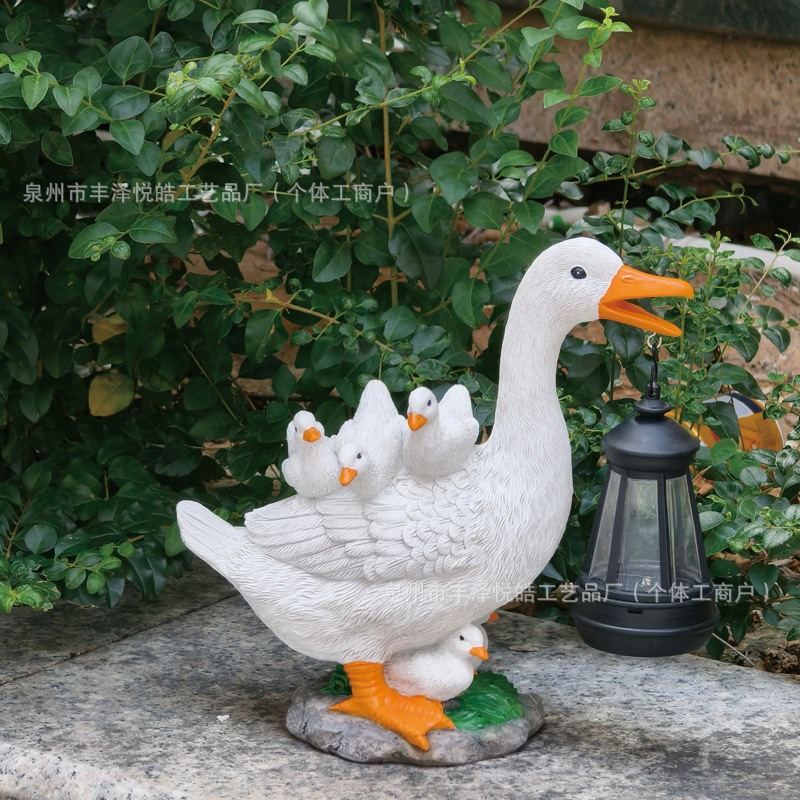 跨境户外新款仿真创意鸭子太阳能花园摆件装饰庭院造景树脂工艺品