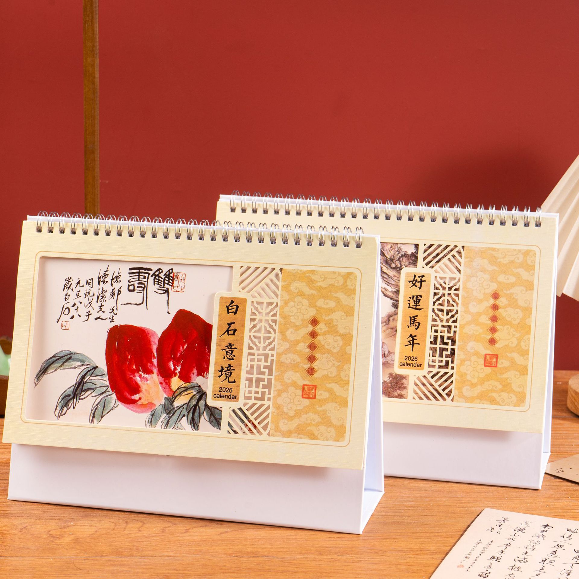 2026马年台历烫金企业logo商务办公桌摆件国风挂历礼品现货批