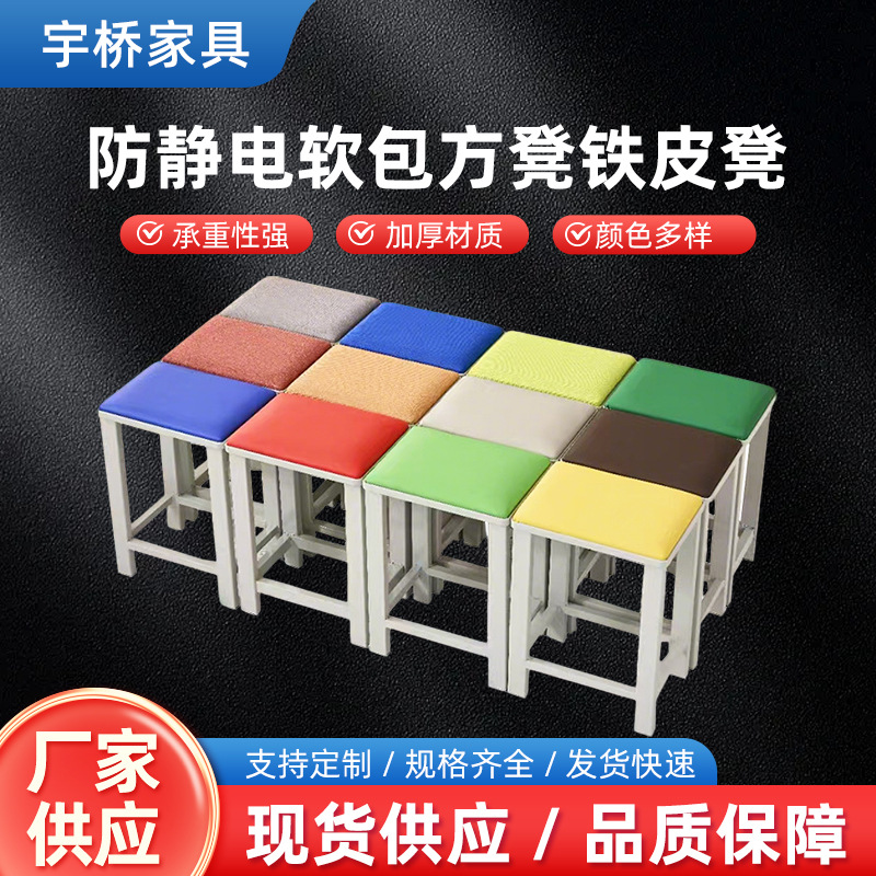 软包铁皮凳防静电方凳工厂车间流水线工作凳加厚加高实验室凳子