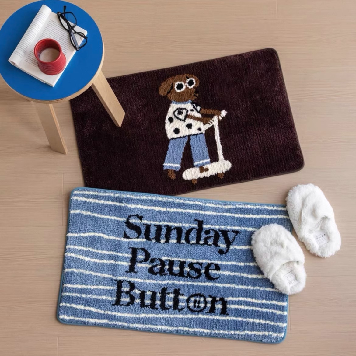 ins风卡通可爱动物仿羊绒地垫卧室客厅不掉毛防滑耐磨易打理地垫