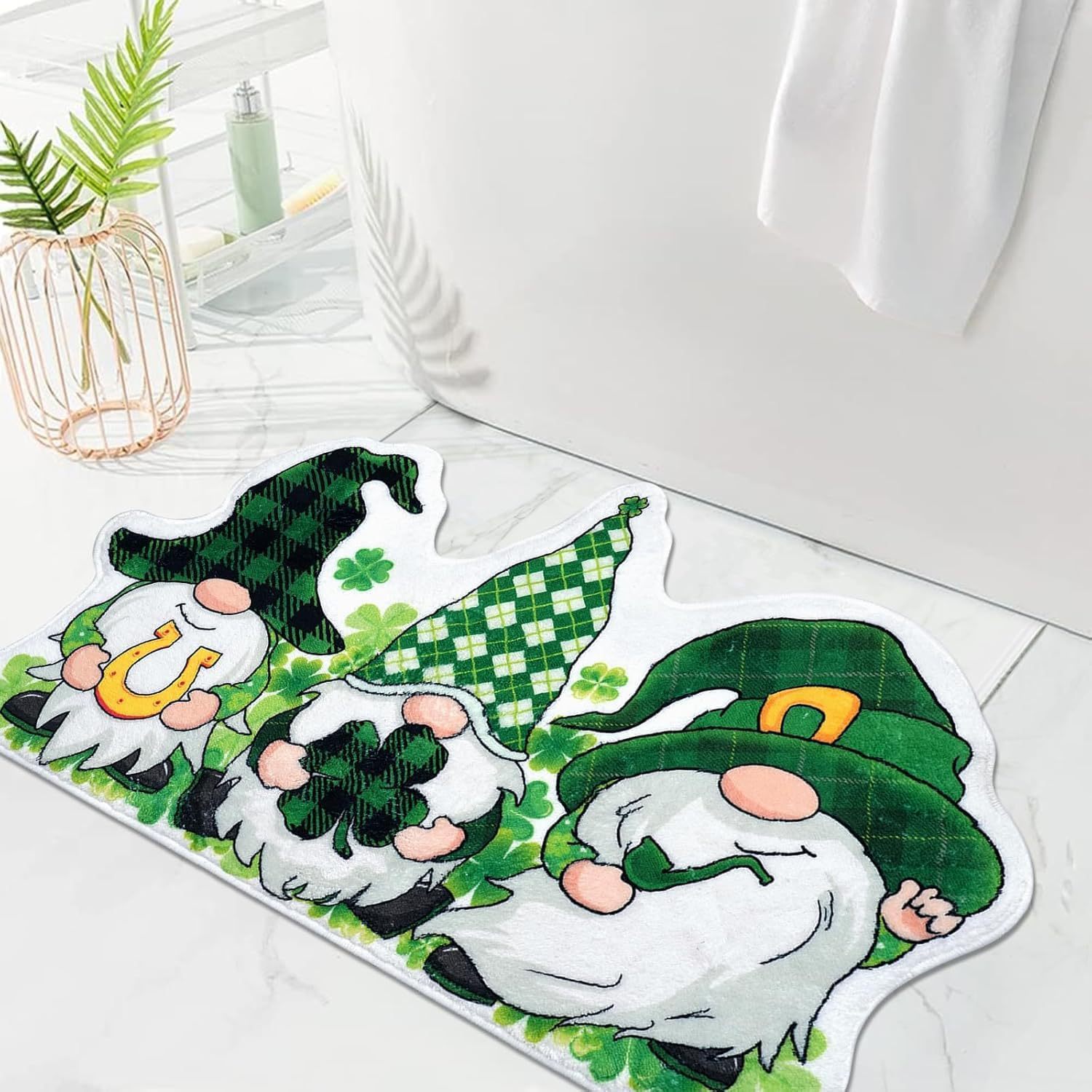 圣帕特里克节仿羊绒地垫三叶草幸运浴室吸水垫节日装饰防滑脚垫