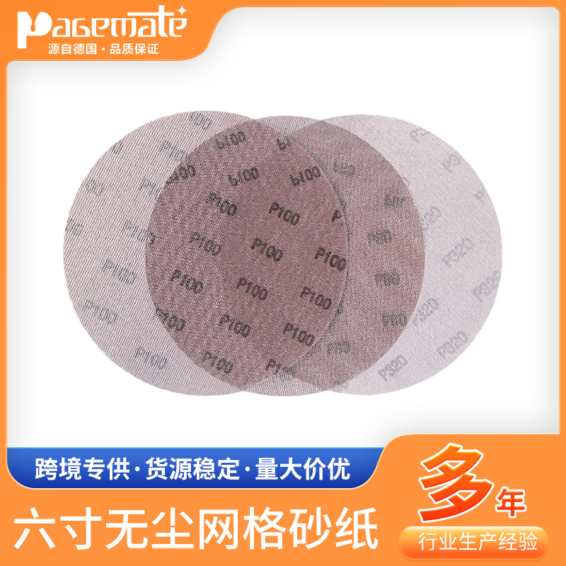 跨境6寸背绒网格砂纸汽车维修底漆打磨除锈圆形砂纸汽修木工砂纸