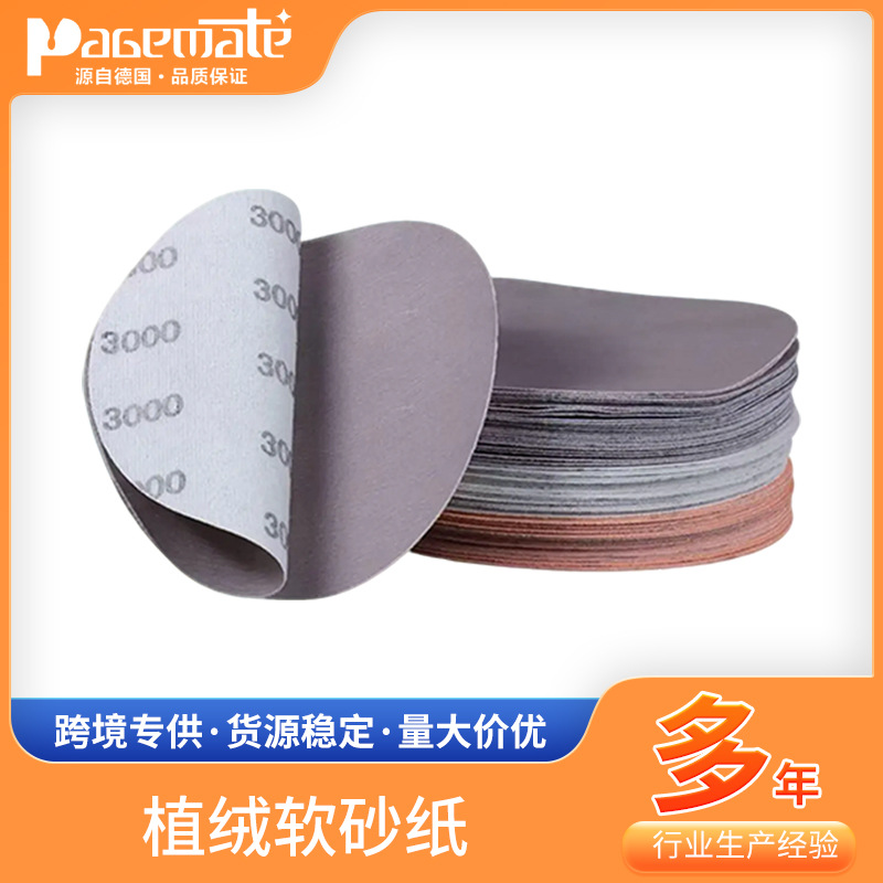 亚马逊6寸植绒砂纸片圆盘背绒砂纸片汽车板件金属抛光打磨砂纸