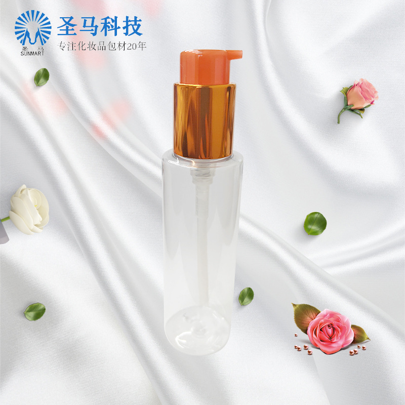 300ml棕色pet扁瓶 24牙金色千秋盖乳液用塑料瓶PE口腔导管瓶