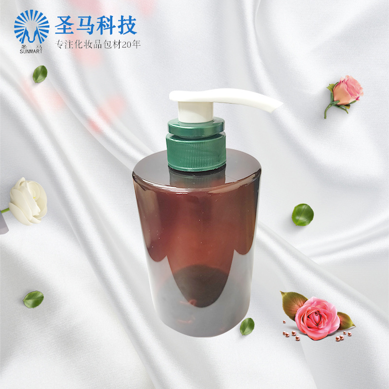 500ml棕色PET塑料洗发水瓶 配33/400上下锁长嘴乳液塑料泵头批发