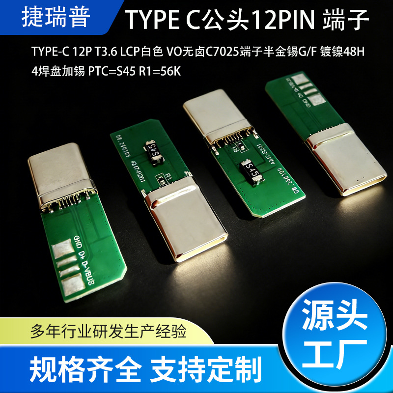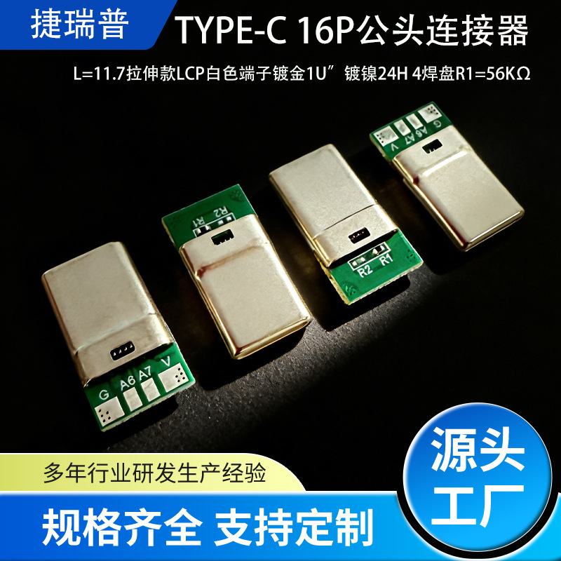 typec公头连接器端子镀铂2P镀镍4焊盘56K电阻稳定传输TP-C接口厂