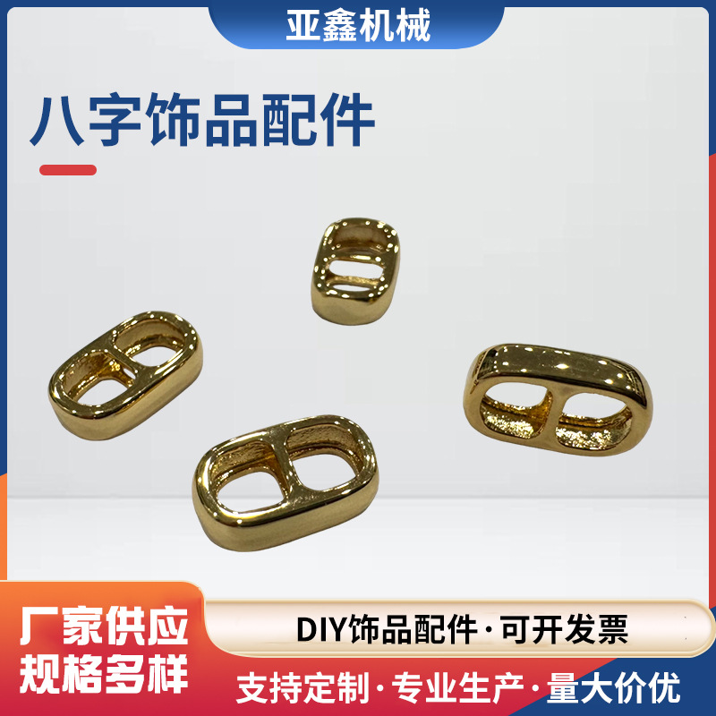 18K金八字8字扣猪鼻子双孔硅胶隔珠手工手链调节珠饰品配件