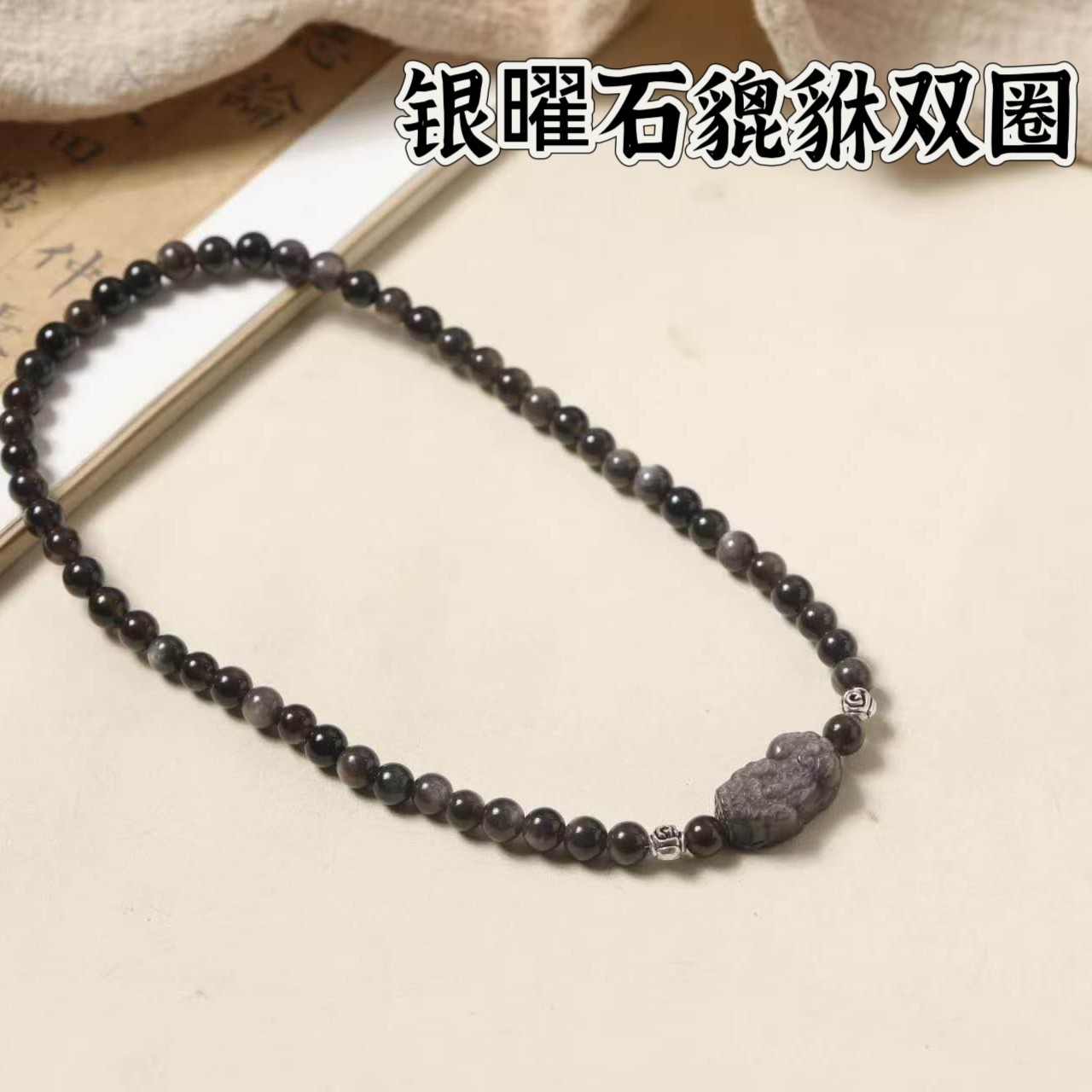 银耀石双圈手串0.6搭配貔貅潮酷银灰色男女国风文玩盘玩手链批发
