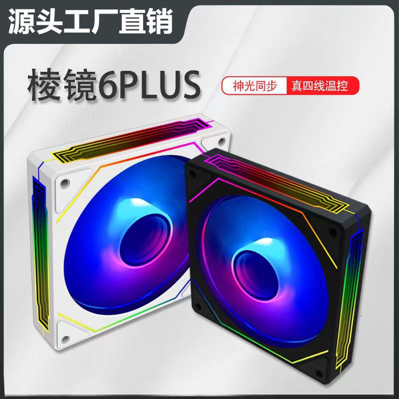 工厂批发棱镜6plus全面镜神光同步12cm温控PWM机箱散热风扇