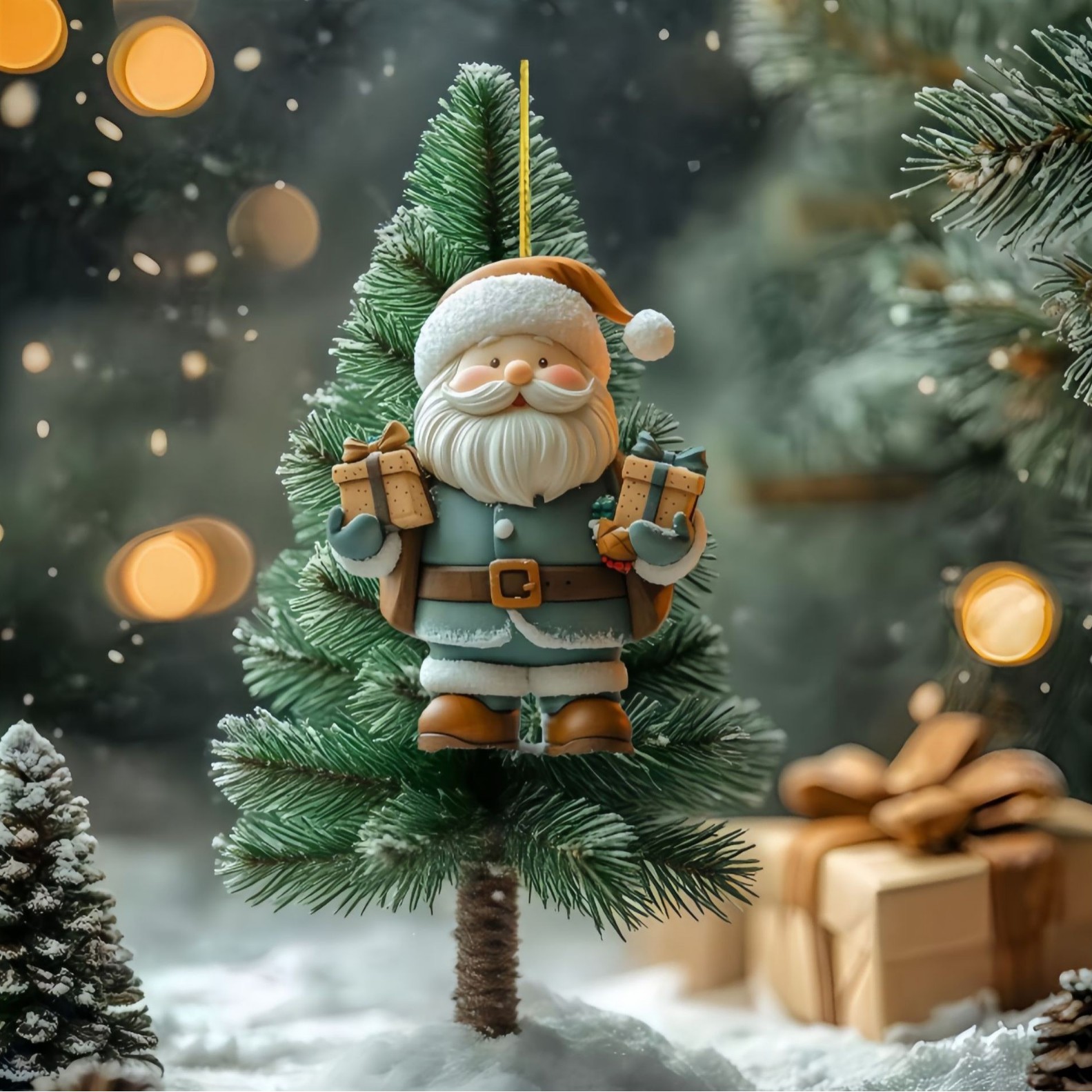 跨境亚克力平面圣诞老人节日布置圣诞树装饰品车载装饰挂件