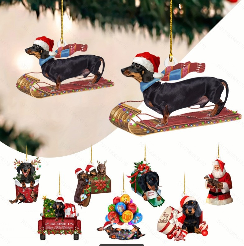 跨境新品圣诞节腊肠狗系列 圣诞树装饰品 汽车背包挂饰家居装饰品