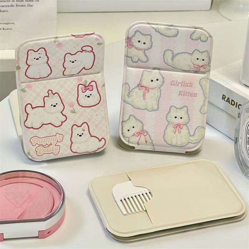 高颜值折叠小镜子女生随身补妆化妆镜宿舍可爱迷你便携镜子带梳子
