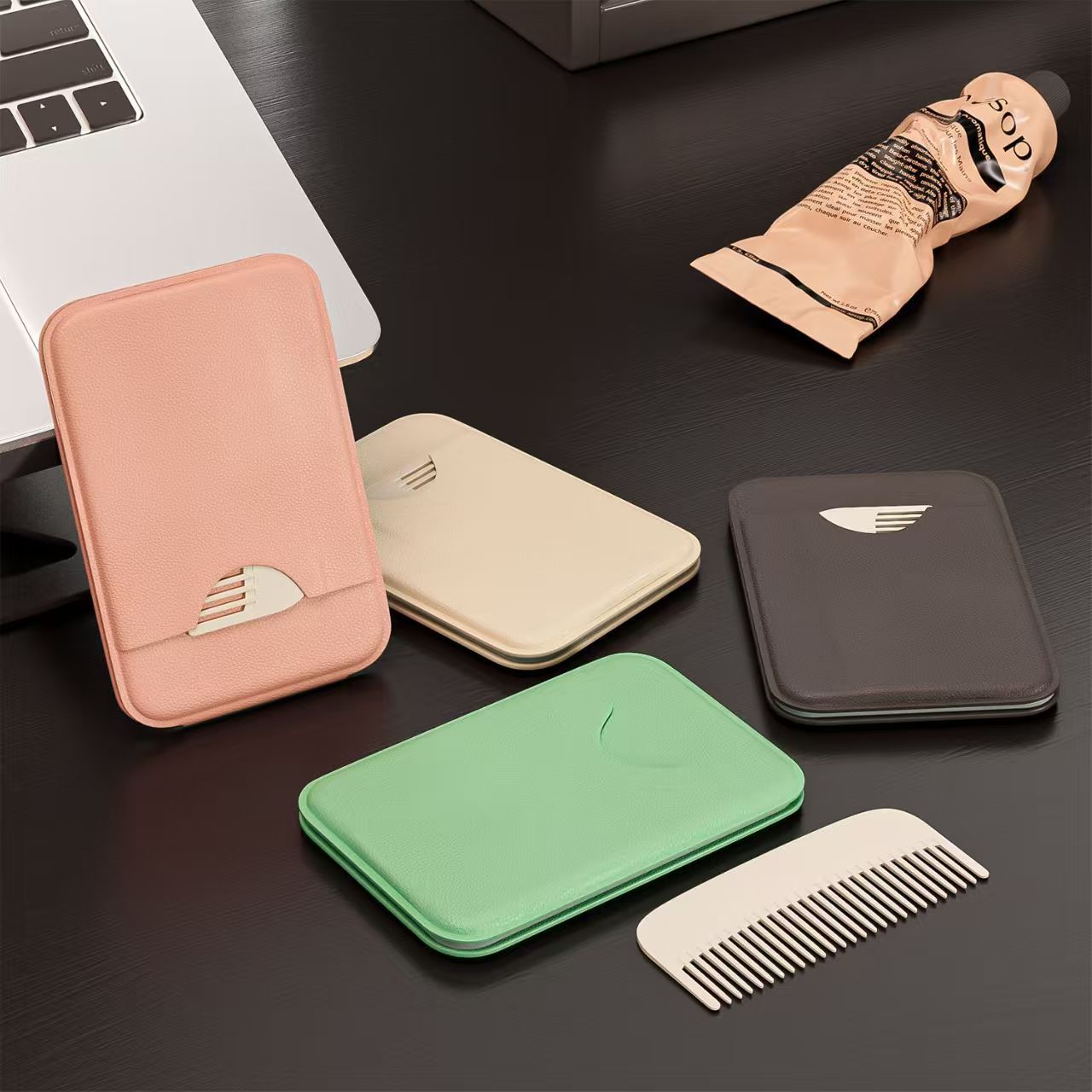 镜子折叠翻盖式PU化妆镜桌面可立便捷高清镜子跨境简约梳妆台式镜